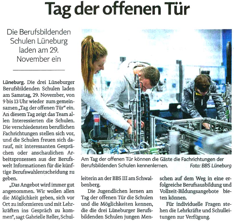 Neue Fachrichtungen für Berufsschüler – Allgemeine Zeitung Uelzen, 03. November 2018